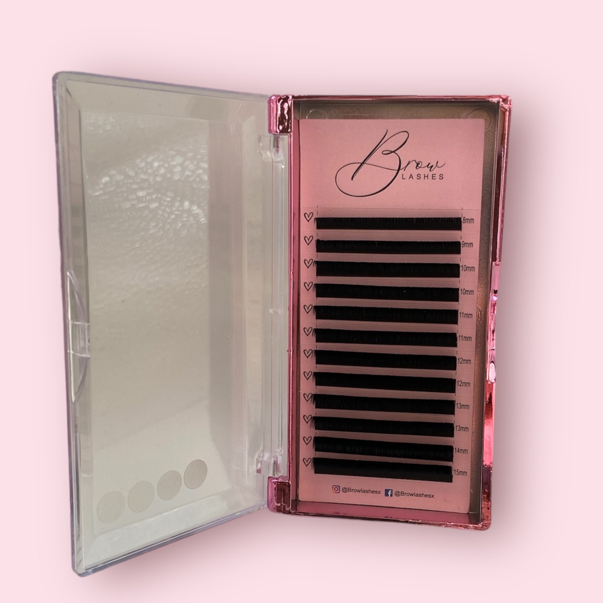 Our classic lash trays are made to the highest quality to ensure the most amazing sets are achieved by lash techs at all stages of their careers. The easiest lashes to apply due to the flatness of the base resulting in the instant grip to the natural lash. The tips are very slightly split at the ends to create a fuller fluffier look. Pure black in colour and guaranteed to stay in shape in between infills.